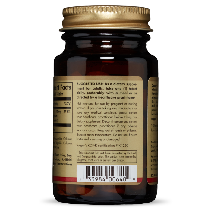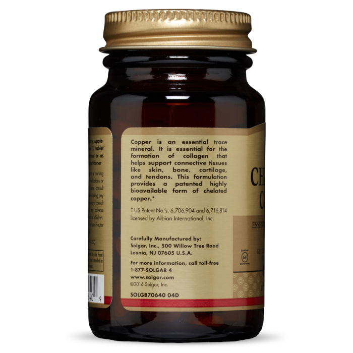Kupfer ist ein essentielles Spurenelement. Es ist wichtig für die Bildung von Kollagen, das Bindegewebe wie Haut, Knochen, Knorpel und Sehnen unterstützt. Diese Formulierung stellt eine patentierte, hoch bioverfügbare Form von chelatiertem Kupfer dar.