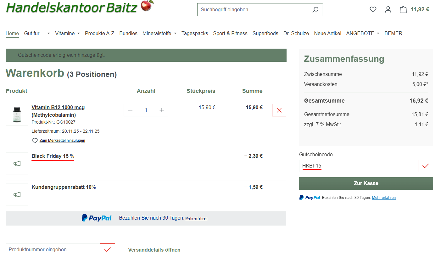 Der Preisvorteil wird direkt abgezogen – einfach kurz kontrollieren.