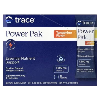 Trace Minerals Power Paks enthalten erstklassige 1.200 mg Vitamin C sowie B-Vitamine, essenzielle Elektrolyte wie Natrium, Kalium, Magnesium und Calcium und ohne künstliche Geschmacksstoffe, Farbstoffe oder Süßstoffe. Wir haben außerdem ConcenTrace® hinzugefügt – einen Vollspektrum-Komplex aus ionischen Spurenelementen –, um das Gleichgewicht der Mineralstoffe im Körper zu unterstützen.