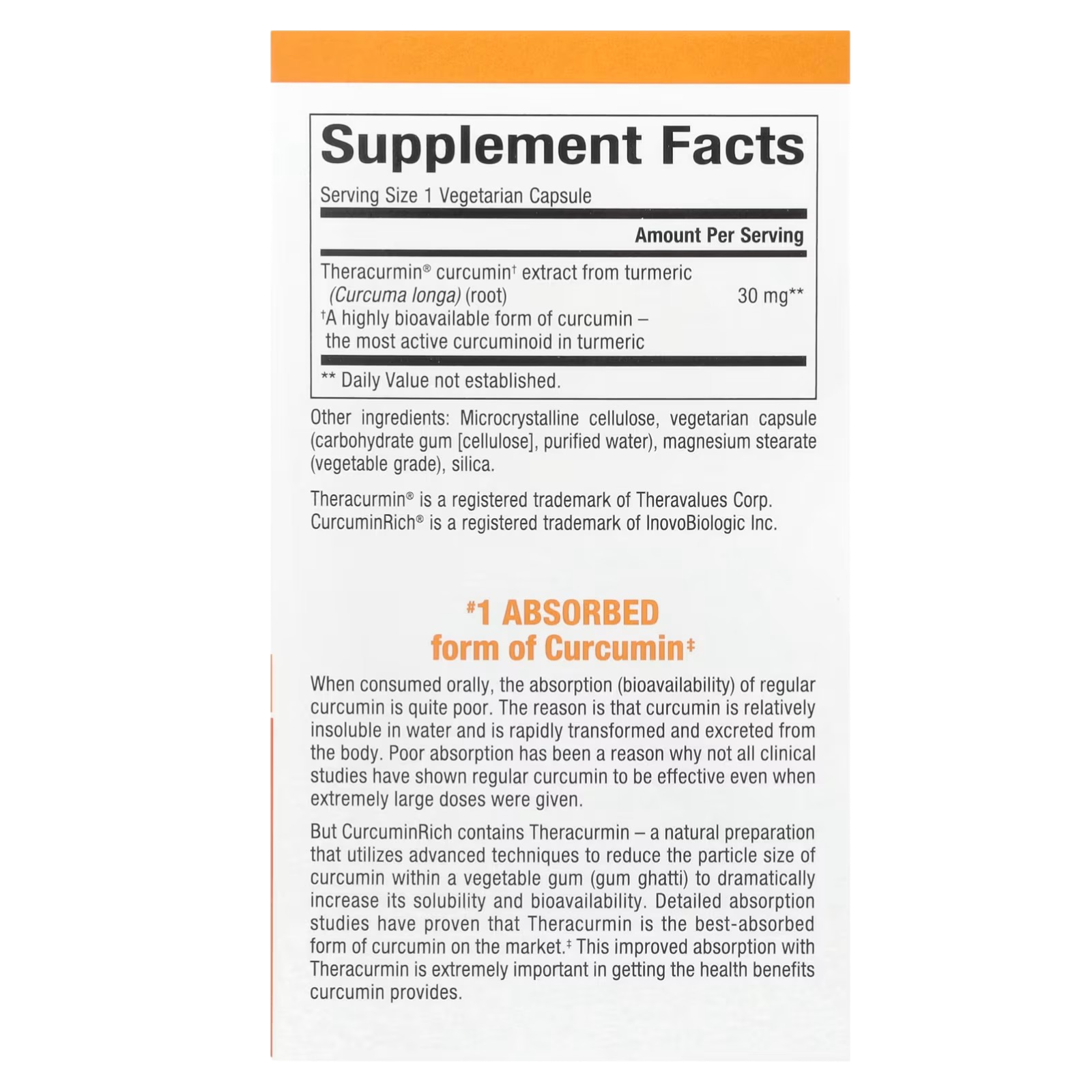 CurcuminRich enthält jedoch Theracurmin – ein natürliches Präparat, das fortschrittliche Techniken verwendet, um die Partikelgröße von Kurkumin in einem pflanzlichen Gummi (Gummi Ghatti) zu reduzieren und seine Löslichkeit und Bioverfügbarkeit drastisch zu erhöhen. Detaillierte Studien zur Aufnahme haben gezeigt, dass Theracurmin die am besten aufzunehmende Form von Kurkumin auf dem Markt ist.+ Diese verbesserte Aufnahme mit Theracurmin ist äußerst wichtig, um die gesundheitlichen Vorteile von Kurkumin zu nutzen.